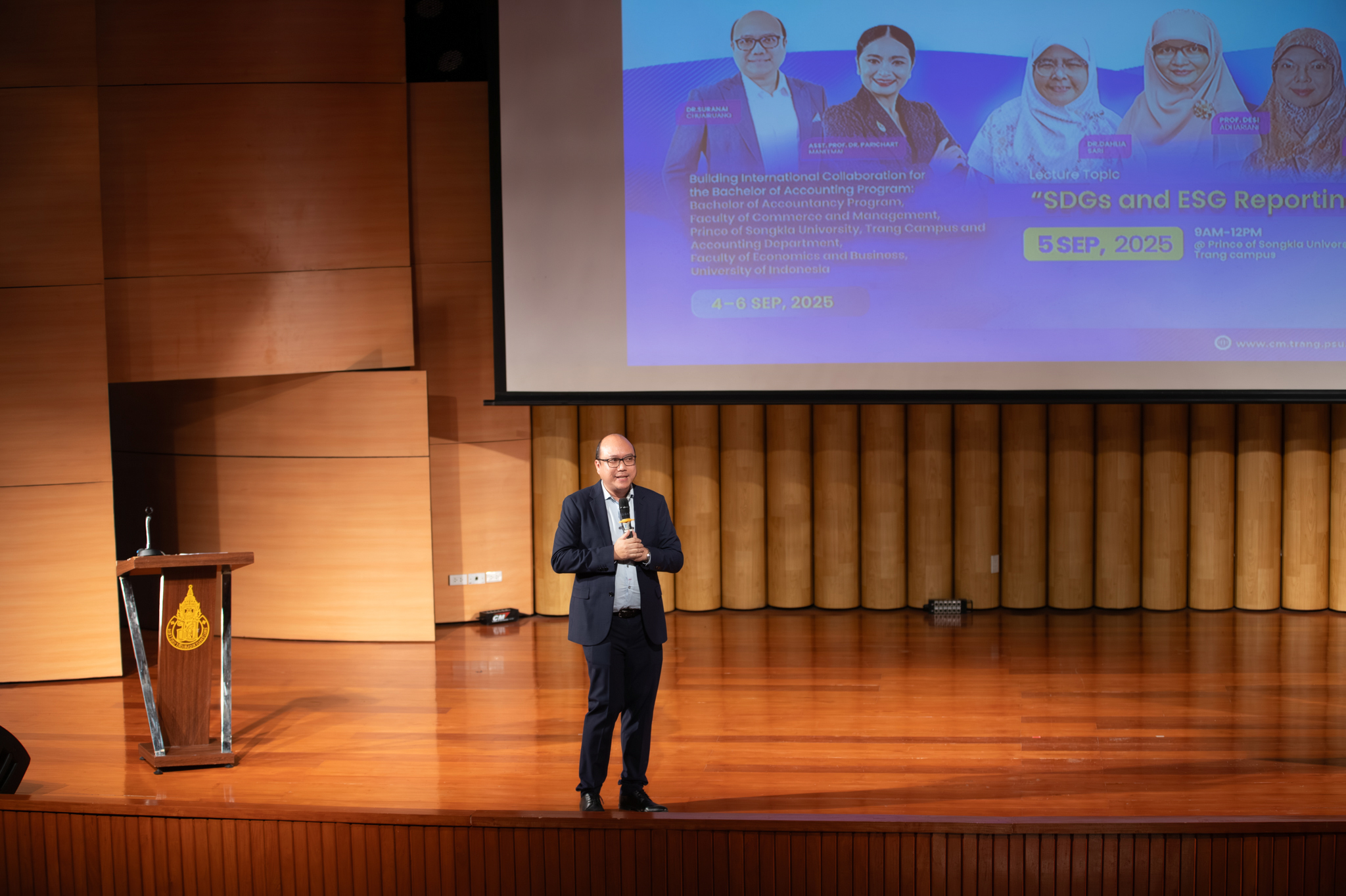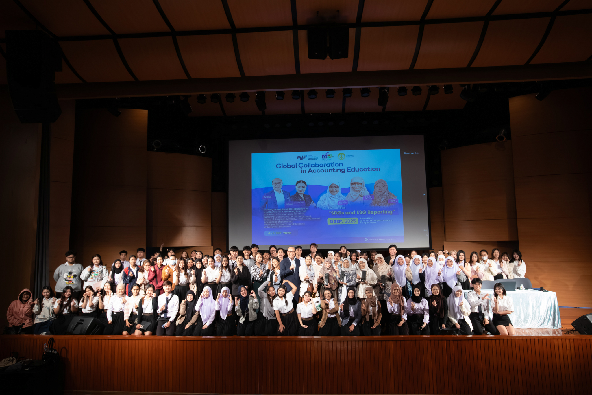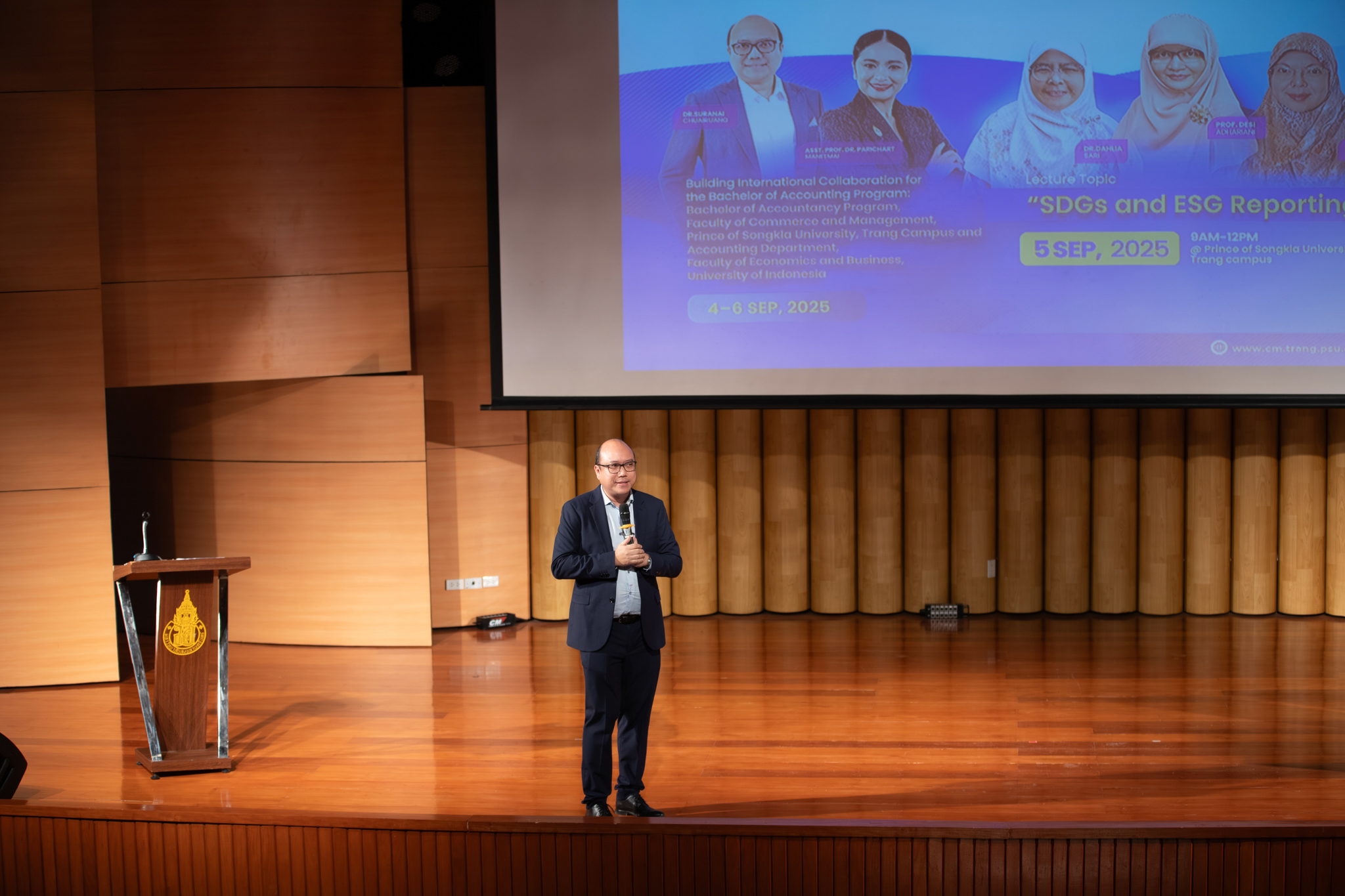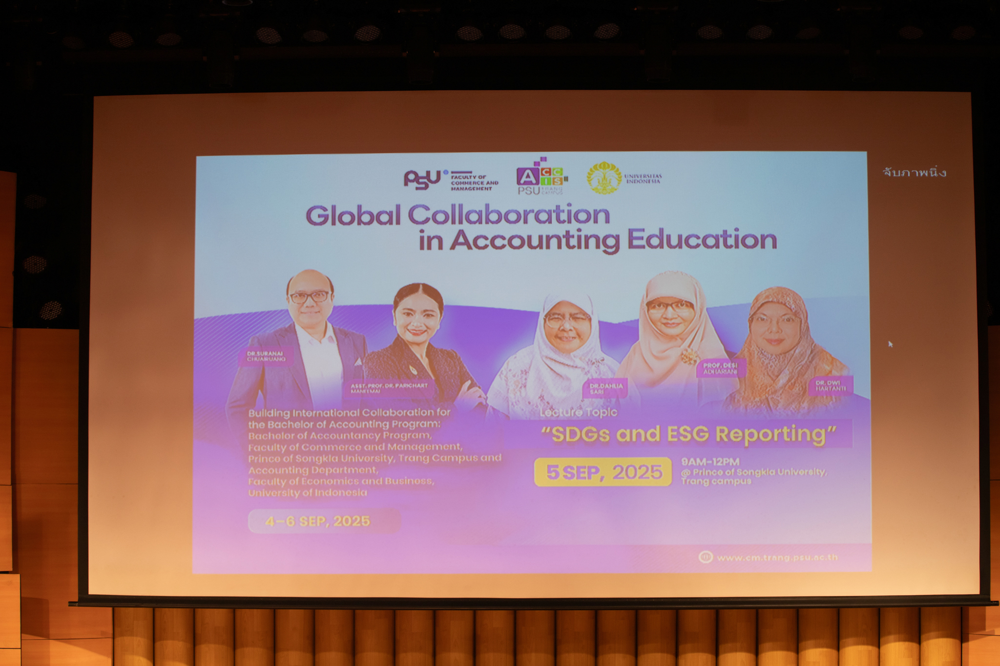 เมื่อวันที่ 5 กันยายน 2568 หลักสูตรบัญชีบัณฑิต คณะพาณิชยศาสตร์และการจัดการ ร่วมกับ Accounting Department, Faculty of Economics and Business, University of Indonesia สร้างความร่วมมือระดับนานาชาติ ยกระดับการเรียนการสอนบัญชีให้มีมิติสากลและเชื่อมโยงกับประเด็นร่วมสมัยในระดับโลก “SDGs and ESG Reporting” โดยวิทยากรผู้ทรงคุณวุฒิ Prof. Desi Adhariani – Head of Accounting Department ร่วมด้วย Dr. Dahlia Sari, Dr. Dwi Hartanti – Faculty of Economics and Business, University of Indonesia ความร่วมมือครั้งนี้เป็นอีกก้าวสำคัญในการพัฒนาหลักสูตรบัญชีสู่ระดับนานาชาติ เพื่อเตรียมบัณฑิตให้พร้อมรับมือกับการเปลี่ยนแปลงของโลกธุรกิจและความรับผิดชอบต่อสังคม